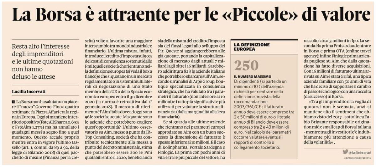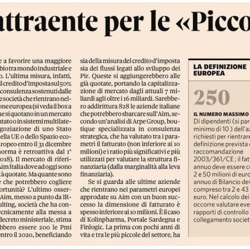 Infatti, è da poco entrata in vigore l'ultima misura della Legge di Bilancio 2018, che introduce il credito d'imposta sul 50% dei costi di consulenza sostenuti dalle Pmi che si quotano in un mercato regolamentato.